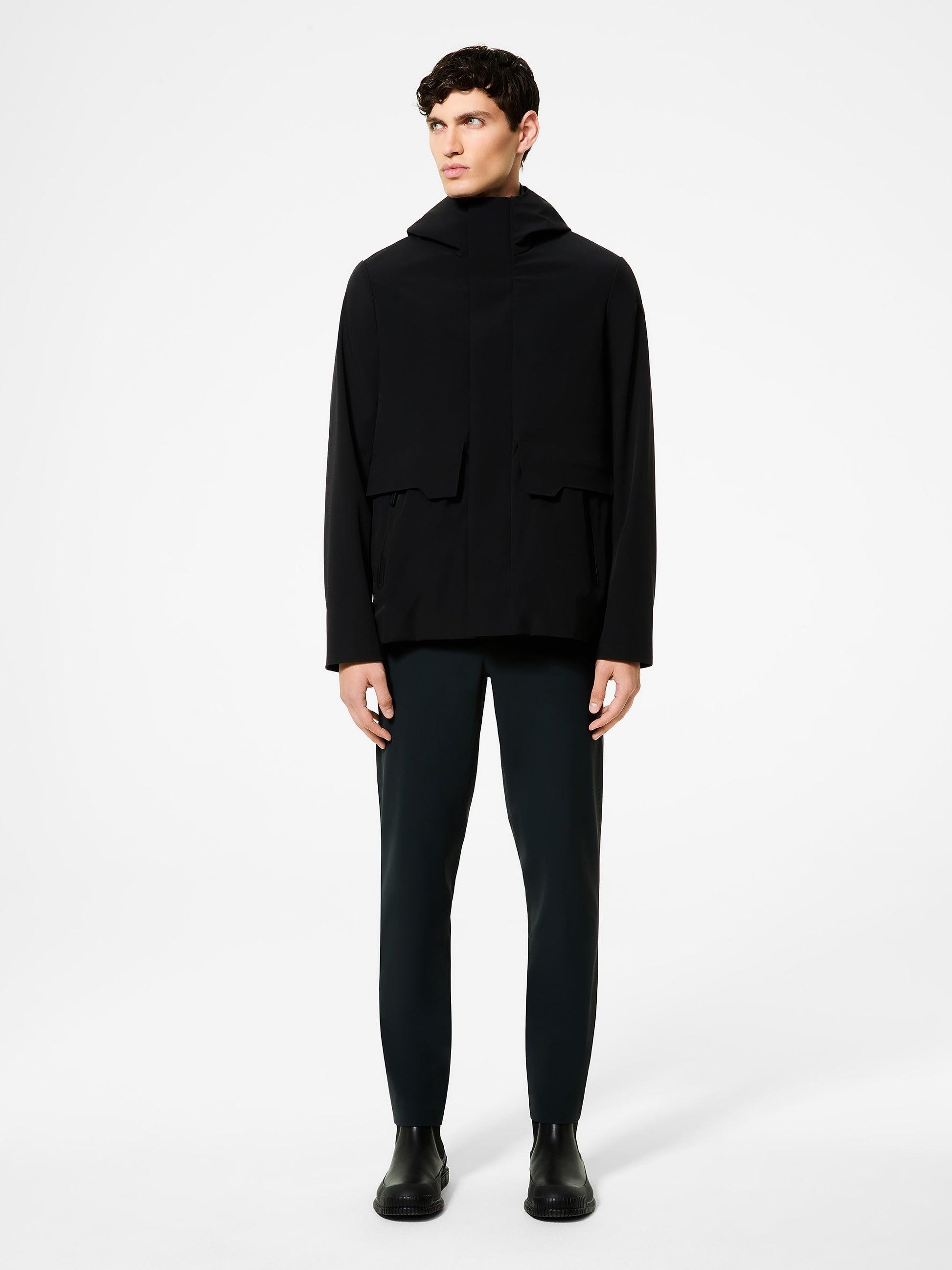 Still one of the most popular items in the men's wardrobe for the colder seasons, the parka evolves its timeless style into a comfortably fitted outerwear with a crisp, hi-tech design. The internal selective thermo-taping construction of the membrane Stratofabric#3, which is stretch and breathable, and the fixed hood protection make the outerwear wind and rain resistant. The garment's minimalism is underscored by the invisible press-stud flap concealing the full zip and by the super-matt look of the shell, which is lightweight and soft to the touch. Side pockets defined by contoured flaps combine with thermo-taped zippered pockets for added versatility and comfort. The soft and warm velvet lining is highlighted by the orange double welt breast pocket and the "Made with love, designed in Tuscany" heart tag. Available in neutral mid-season tones, this versatile and innovative style is complemented by the iconic touch of the black micro-injected logo on the left sleeve.