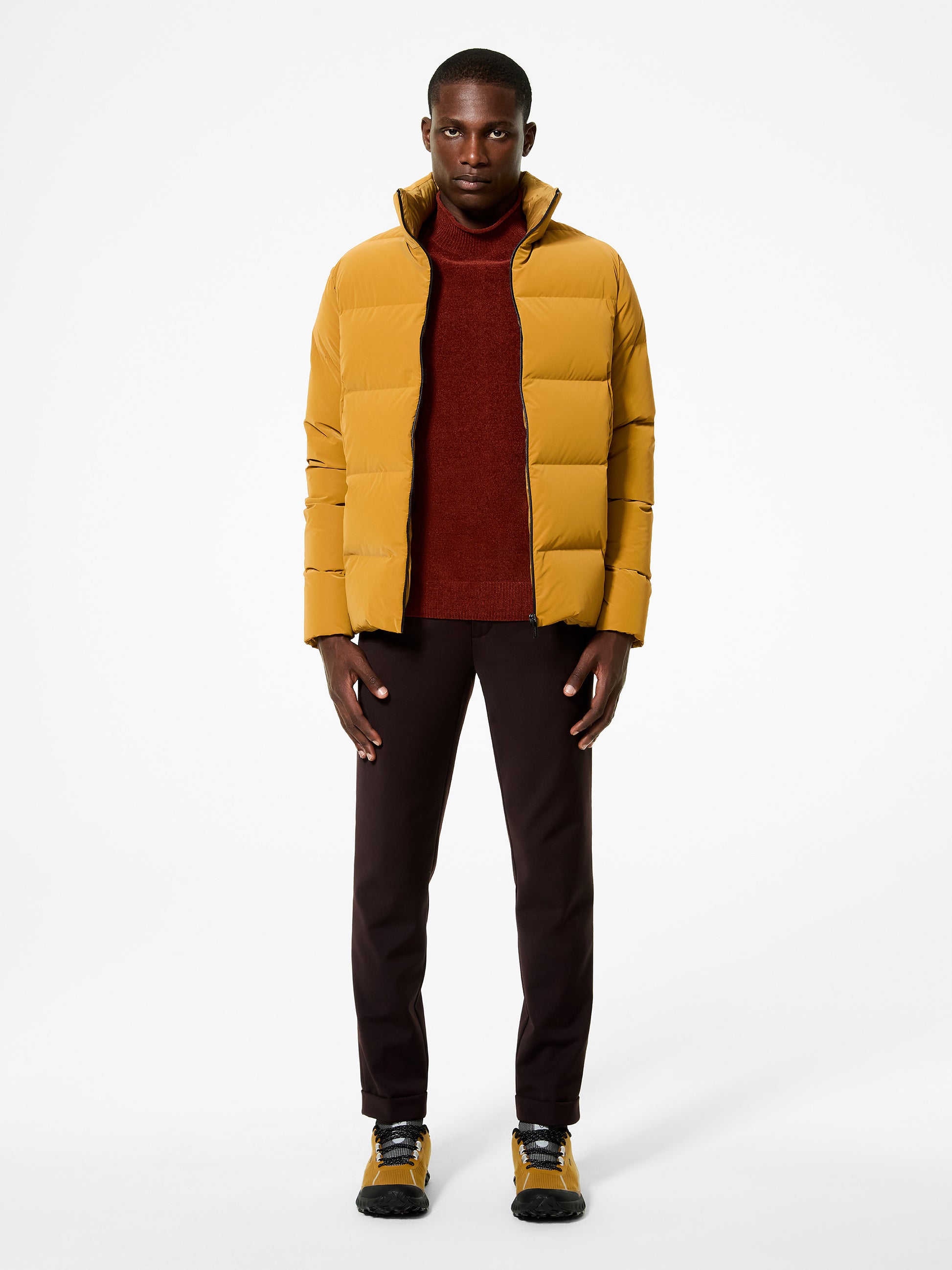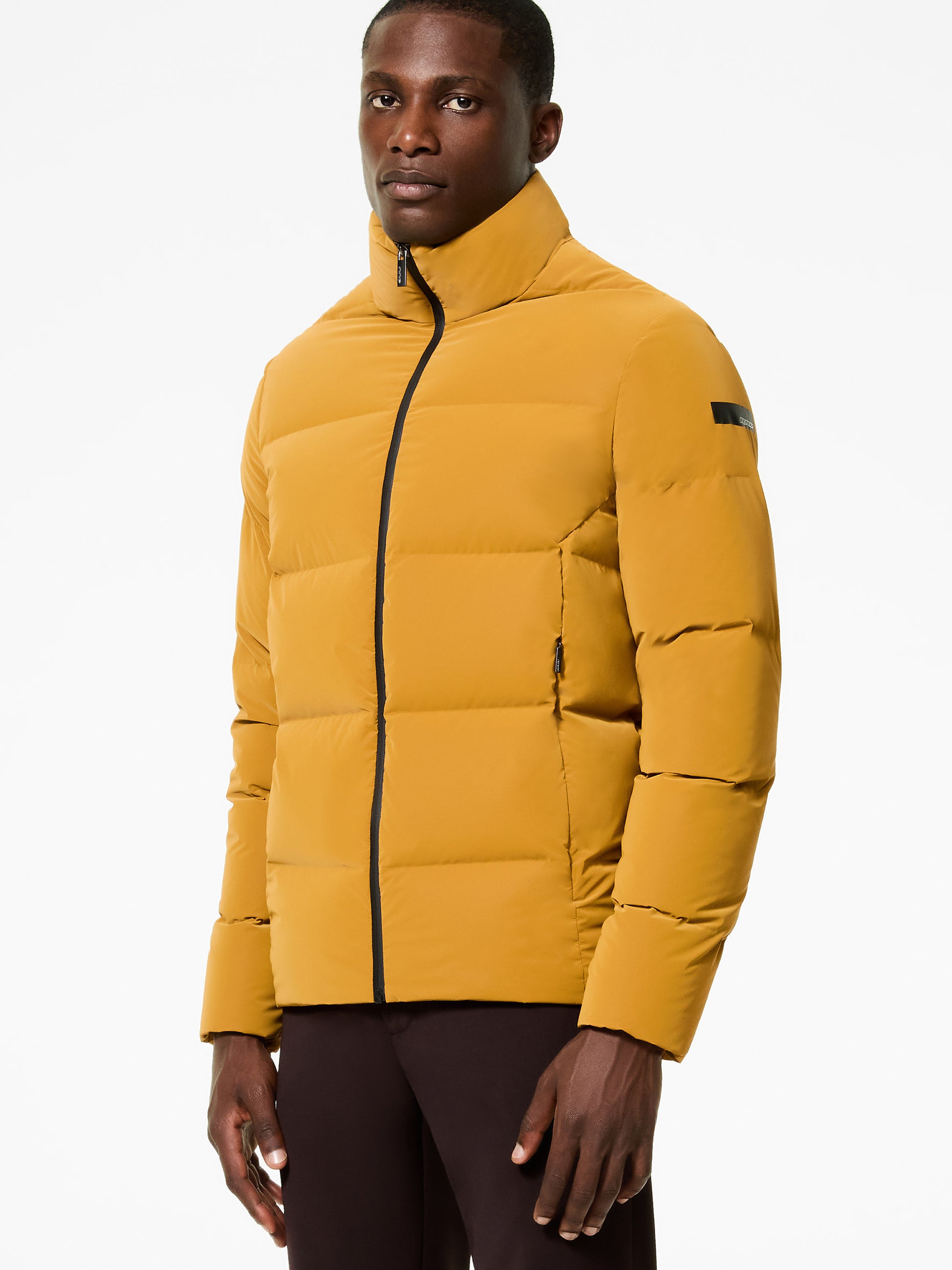 The design of this regular-fit, mid-length down jacket is defined by the width of silicone coated tubic channels with a subtle iridescent effect that define its crisp, contemporary look. The......