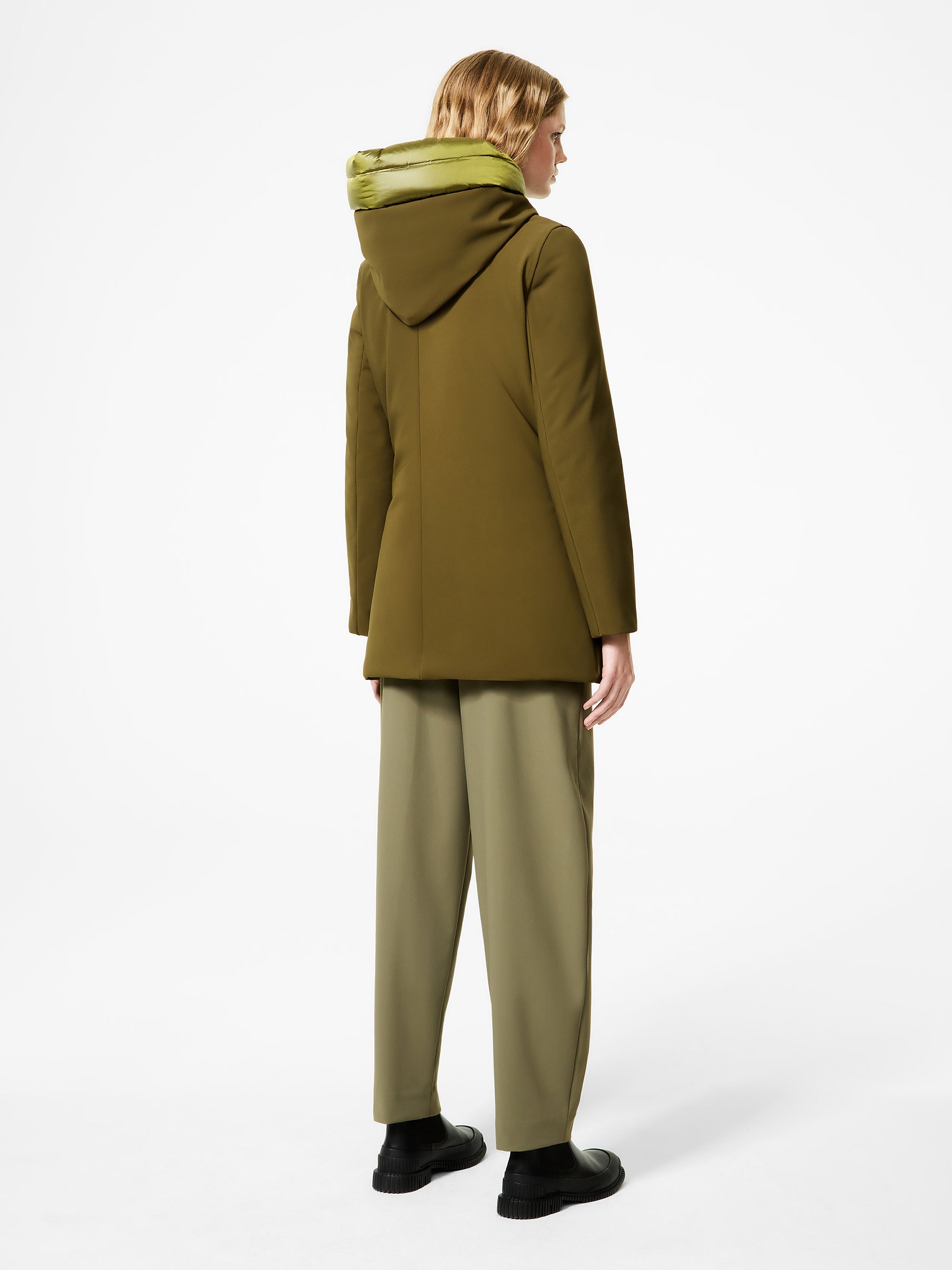 SURFLEX® embodies enduring qualities: patented authenticity for its innovative construction and production process, and certified sustainability. It is a technical fabric with a super-matte appearance reminiscent of more traditional textures: compact, soft, and versatile, it's ideal for creating elegant, easy-care, super-stretch, and non-iron garments. It is made with a 100% recycled polyamide yarn from pre- and post-consumer waste, which is recovered and regenerated to become a new raw material without using non-renewable energy sources: the fishing nets, recovered and cleaned through a sophisticated physical-chemical decomposition process, are regenerated into new, completely recycled yarn.