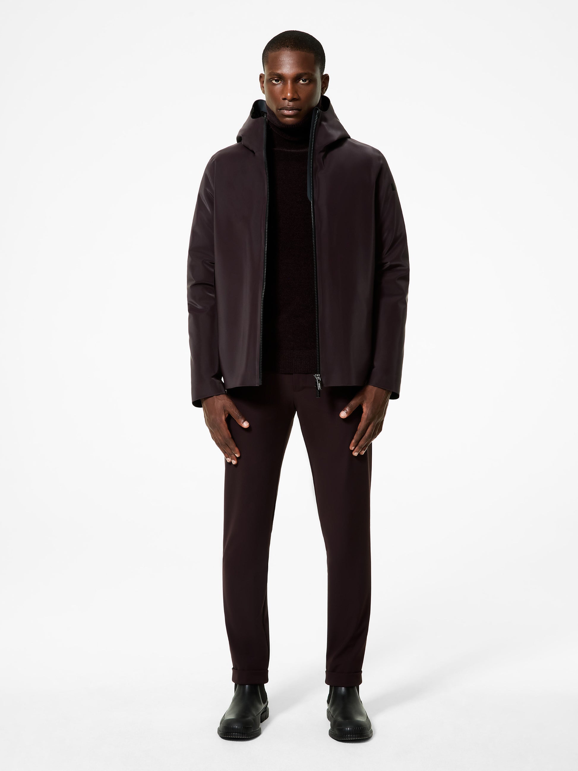 Fra i modelli di maggior successo della Collezione, la Storm Jkt trova un'estetica unica e originale nel look cangiante del tessuto a membrana Stratofabric#3 spalmato a silicone, che con la costruzione Laser Glue Lock garantisce l'assoluta impermeabilità a questa giacca invernale di media lunghezza. Il suo design nitido e minimalista è valorizzato dall'assenza di impunture e dalla zip spalmata nera a doppio cursore, che sale a chiudere il colletto e il cappuccio fisso per una migliore protezione dal vento e dalla pioggia. Il calore è assicurato dalla morbida imbottitura in piuma d'anatra 90/10, racchiusa nei canali tubici, nell'innovativo sistema Floating Shield che consente un assoluto comfort all'indosso e un fit impeccabilmente diritto. Dettagli che fanno la differenza: le tasche tasche laterali a zip termonastrate sono nascoste dalle patte a bottone magnetico, mentre l'interno presenta il doppio filetto arancione fluo sulla zip invisibile del taschino, accanto alla tag a cuore "Made with love, designed in Tuscany". Il logo a microiniezione nero sulla manica sinistra completa la creazione disponibile nelle tonalità scure di tendenza.