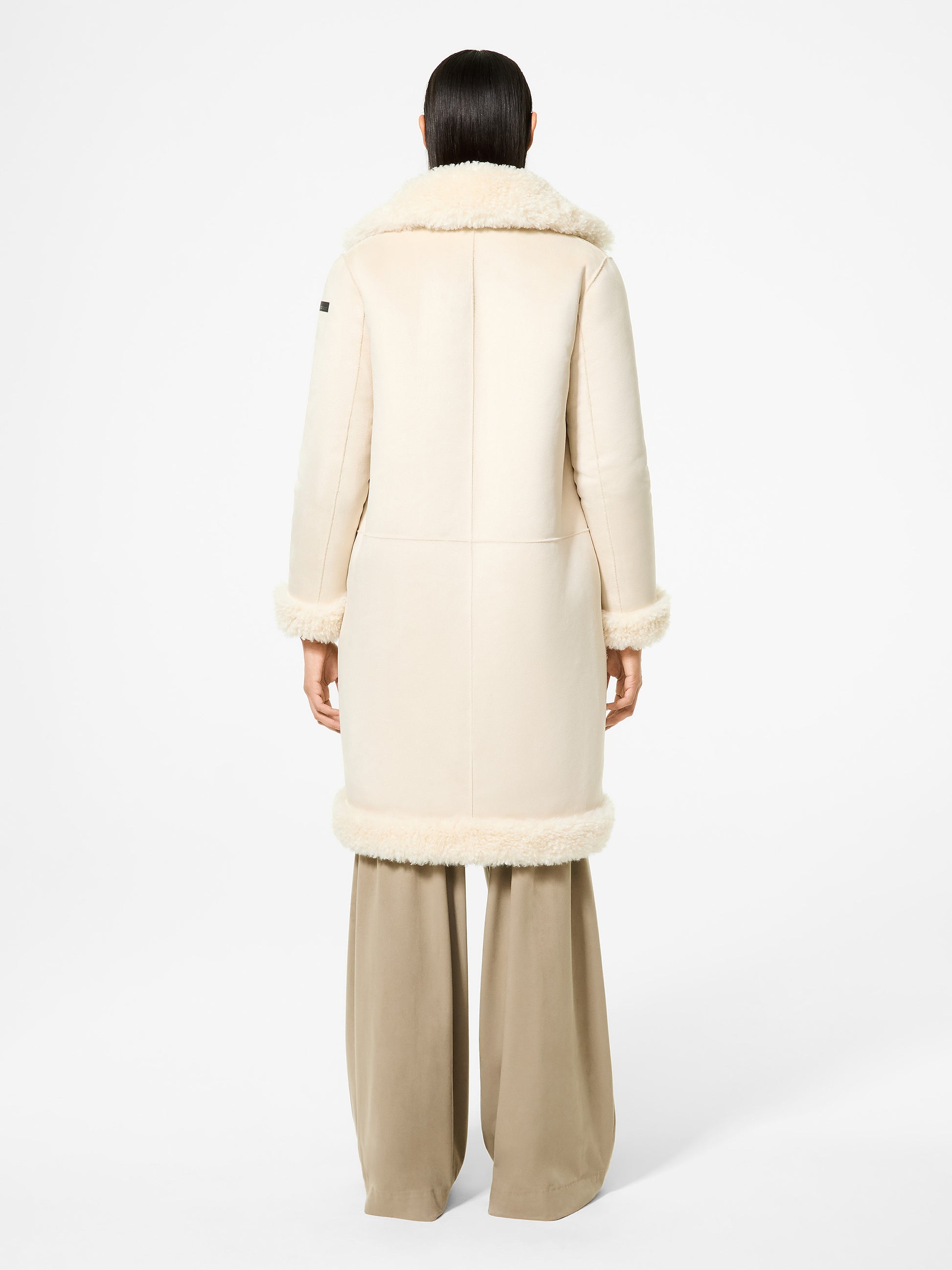 Il cappotto teddy si ispira agli anni 70 nell'interpretare un look rétro, ma attualizzato in chiave elegantemente minimalista e contemporanea. È realizzato in eco pelliccia premium reversibile, che garantisce un comfort unico e versatilità nello styling. La linea morbida e la lunghezza tre quarti avvolgono il corpo in un caldo e morbido abbraccio, ideale nell'affrontare il freddo invernale con stile. L'abbottonatura nascosta sul davanti e le bordure a contrasto in velluto su uno dei due versi sono i dettagli distintivi che aggiungono un tocco di eleganza esclusiva. Il logo a microiniezione nero sulla manica sinistra completa il design con una nota inconfondibile. Lamb Coat Wom Jkt è ideale nella creazione di outfit d'impatto, nell'abbinarsi a un paio di pantaloni in velluto a zampetta per un look rétro chic.