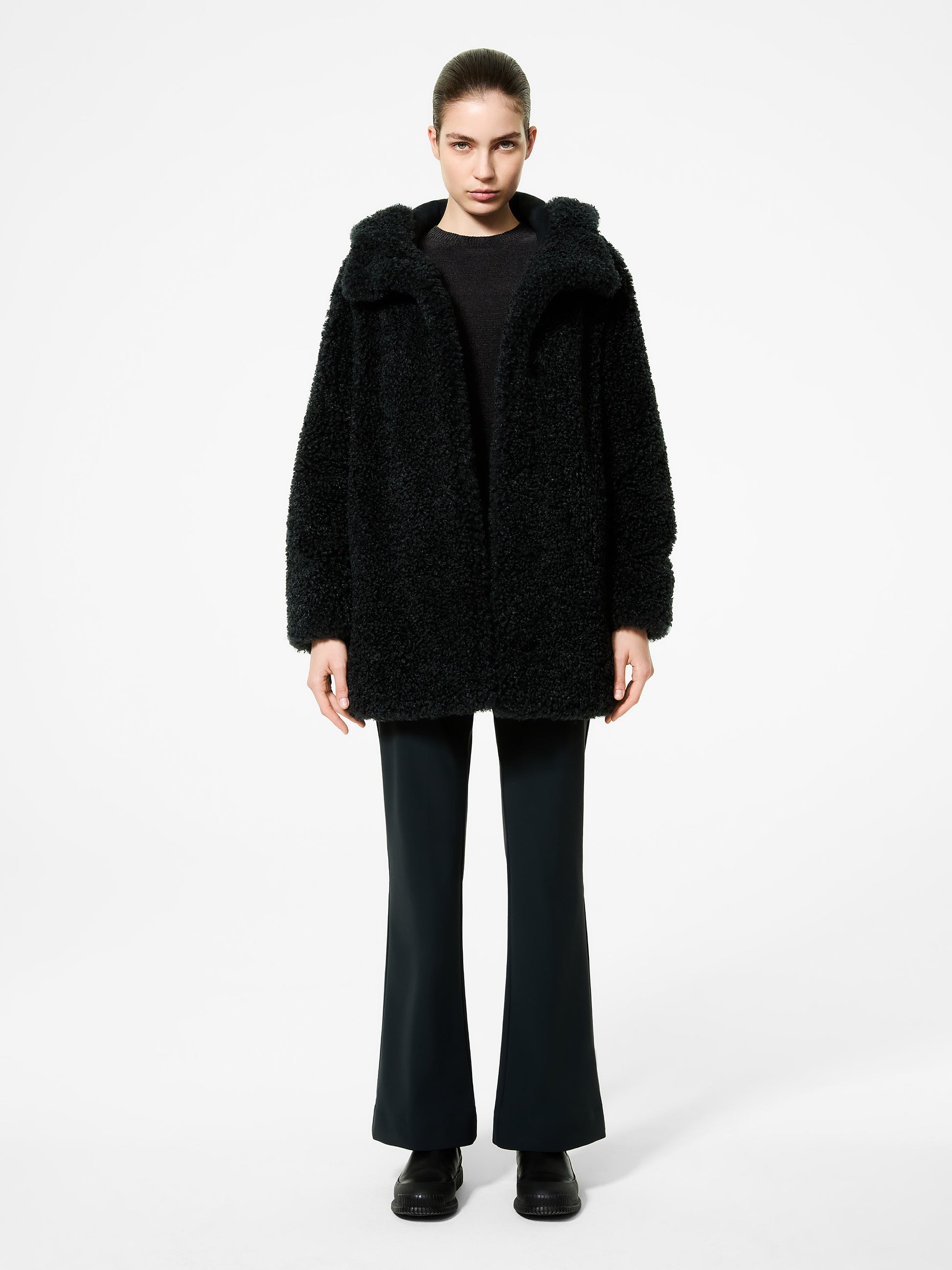 Il capo dal design retro-minimalista trova una nota di moderna eleganza nell'eco pelliccia premium reversibile in eco suede ed ecopelliccia agnellino. La sua linea strutturata, il cappuccio avvolgente e protettivo e la lunghezza media modellano delicatamente il corpo garantendo un aspetto sofisticato e un comfort assoluto. I preziosi dettagli come l'abbottonatura nascosta e i bordi in lamb che segnano il fondo, i polsi, la patta e il cappuccio con l'effetto pelliccia aggiungono un tocco di glamour al capospalla, impreziosito dal logo nero a microiniezione sulla manica sinistra. Per un look deciso e dinamico, Lamb Hood Wom Jkt può essere abbinata a un pullover girocollo in ciniglia morbida, nel creare un outfit che combina un'allure contemporanea all'eleganza senza tempo.