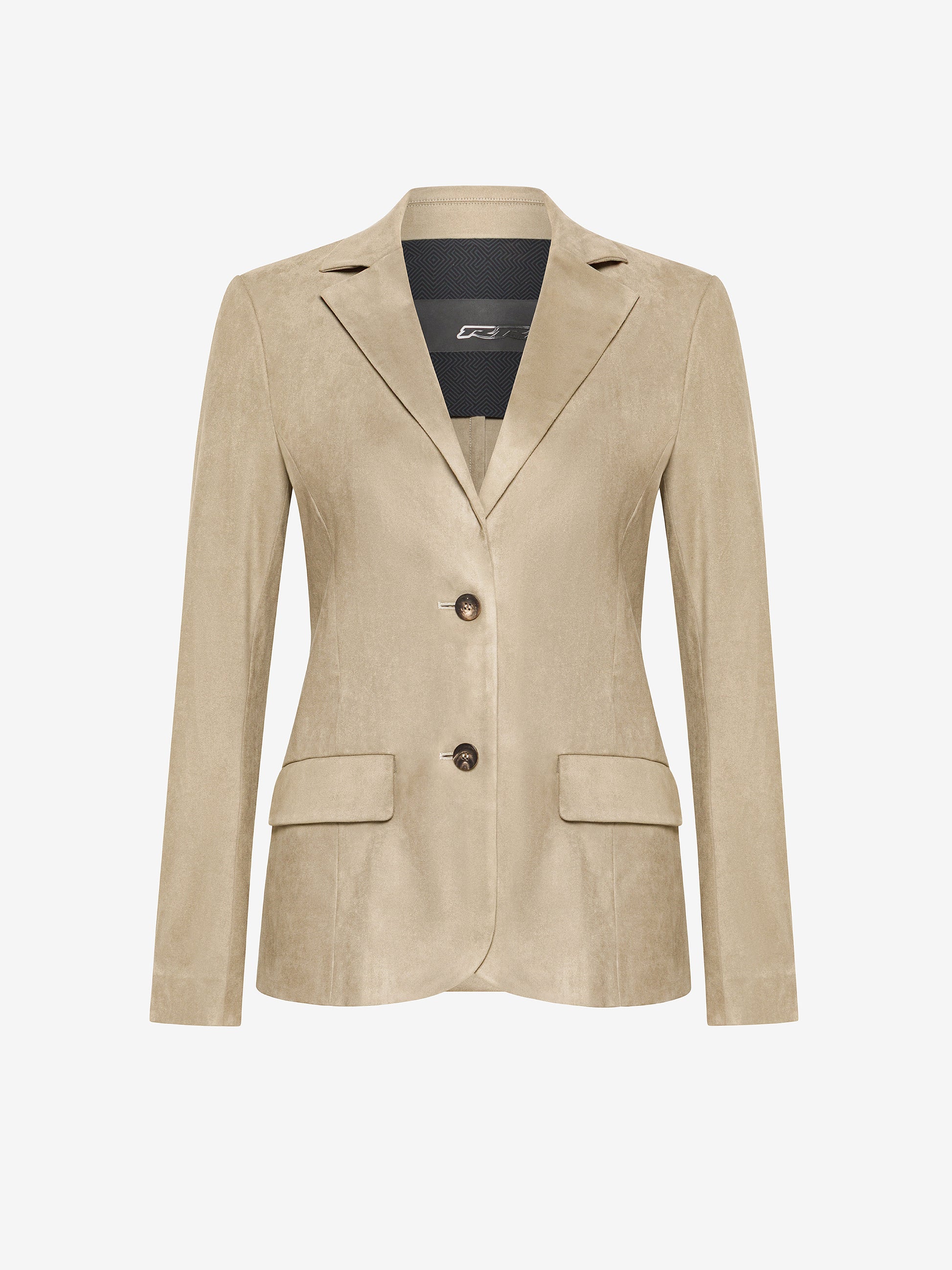 Questo blazer monopetto, realizzato in morbida eco suede che coniuga eleganza e attenzione alla sostenibilità, reinterpreta i codici del guardaroba formale con uno spirito contemporaneo. Il design rivela un equilibrio armonioso tra influenze maschili e dettagli dal gusto femminile, in un gioco di contrasti raffinati. La silhouette è valorizzata dalla sciancratura in vita e dai revers sottili dalle linee nette, mentre le tasche con pattina aggiungono un accento di sobria sofisticazione. Versatile e ricco di personalità, si presta a molteplici interpretazioni: indossato con un pantalone cargo dal taglio asciutto, dà vita a un look urban chic che unisce con naturalezza praticità e ricercatezza.