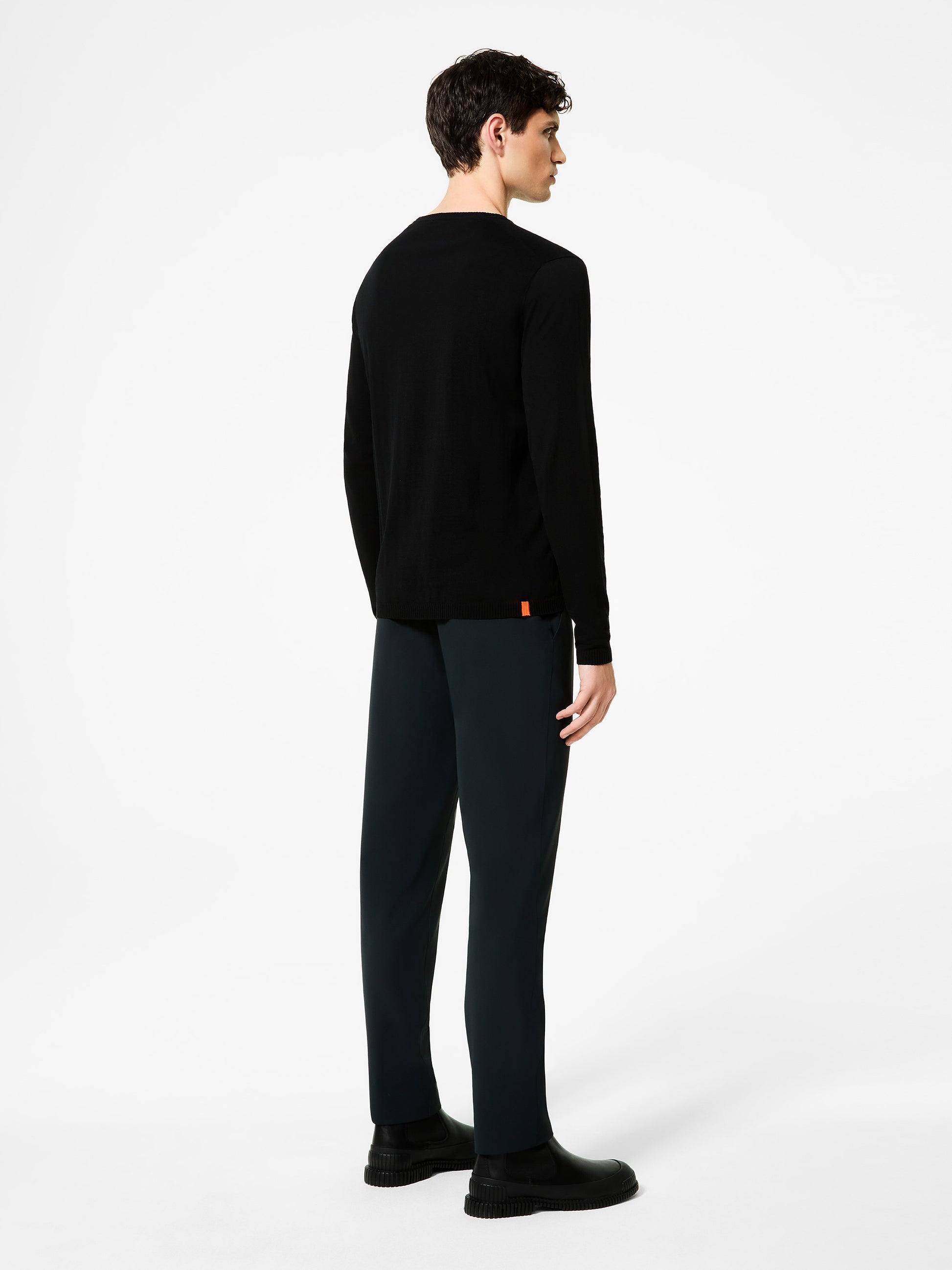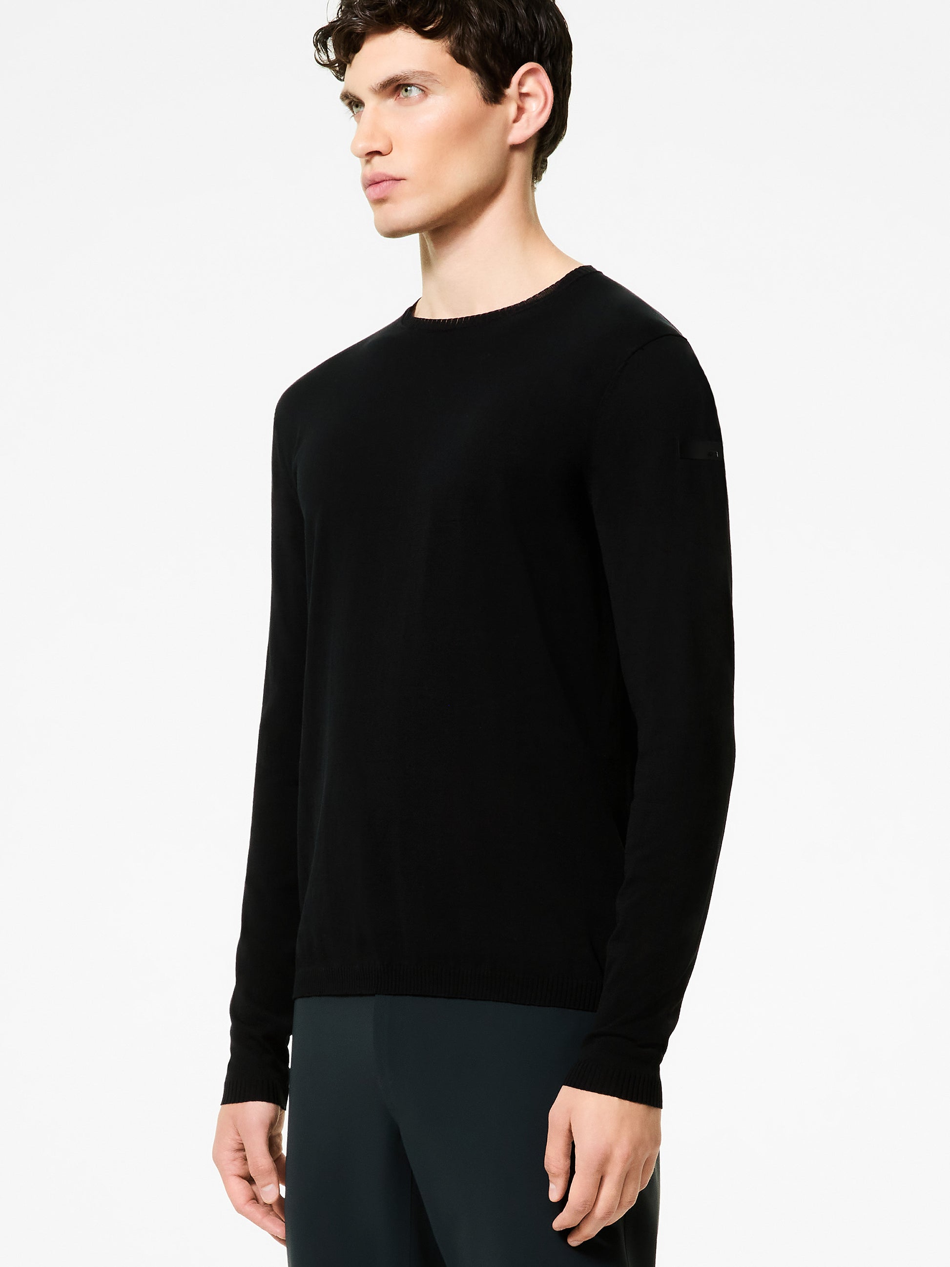 Questa maglia girocollo a maniche lunghe è realizzata in filato naturale di cotone rasato, dalla mano finissima. La creazione monocroma si caratterizza per la leggerezza e il grande comfort, e presenta il girocollo, i polsi e il fondo rifiniti a costine basse elasticizzate che ne perfezionano il fit regolare. L'inserto arancio fluo sul retro e il logo a microiniezione nero sulla manica sinistra sono le note di stile distintivo che ravvivano i toni scuri della Shirty Round Knit, un' alternativa ricercata alla semplice T-shirt, o alla camicia quando è indossata come sottogiacca in un look smart casual da ufficio, o per l'occasione serale.