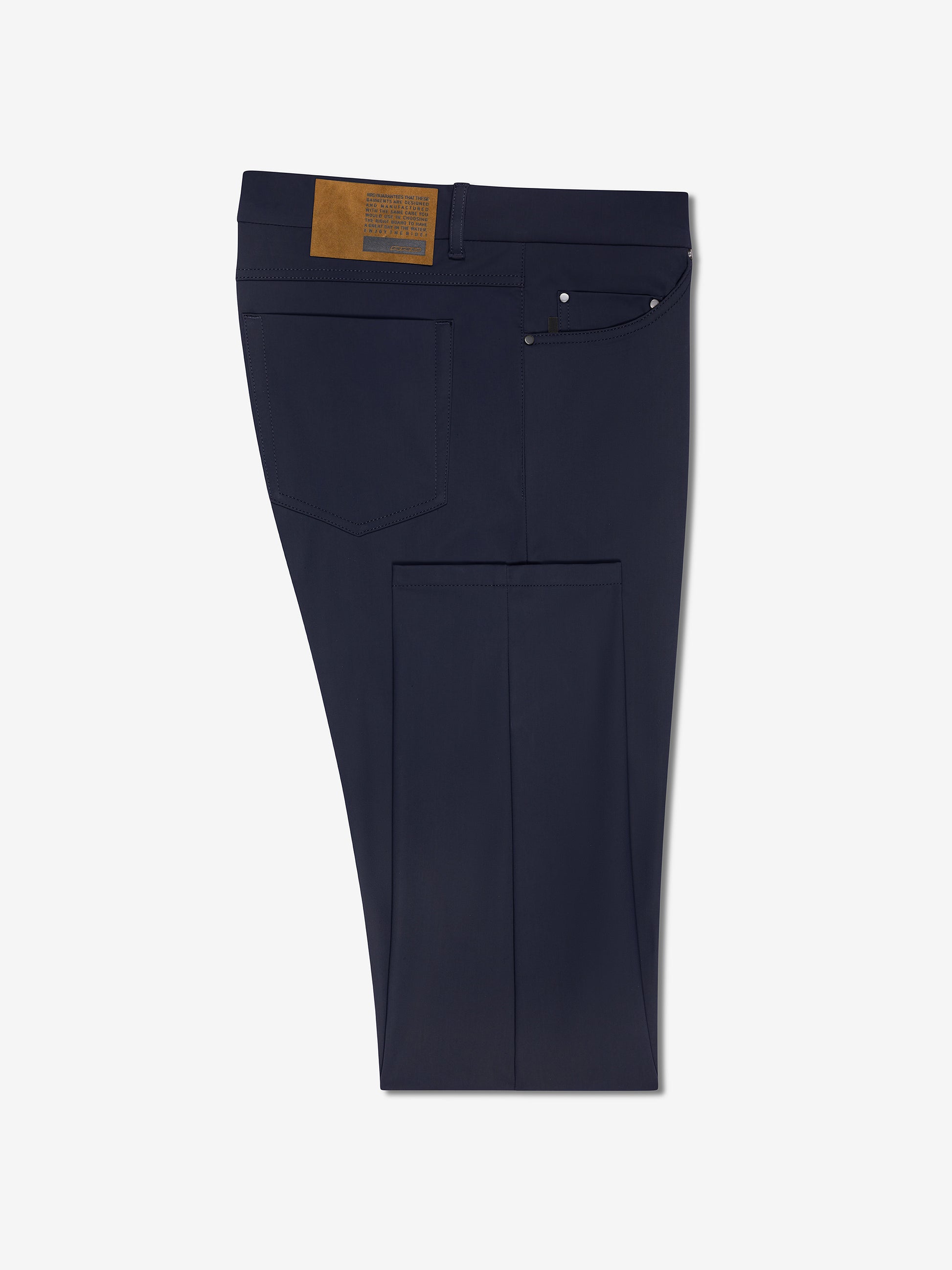 Esemplari per comfort e stile quotidiano, questi pantaloni coniugano l'eleganza senza tempo del design cinque tasche con la versatilità del tessuto stretch SURFLEX® invernale, apprezzato per la sua mano morbida e per il suo look super opaco. Il fit regolare e la vita media valorizzano la silhouette con naturalezza. La cintura con passanti rivela la sofisticata fascia interna a stampa Monogram Razzle Dazzle nera tono su tono. La chiusura frontale si caratterizza per l'accostamento del bottone a chiodo in metallo e l'abbottonatura nascosta in pregiato corno. Le tasche frontali, impreziosite da discreti rivetti metallici, sono accompagnate dalla classica pocket watch con tag nera, simbolo di un'eleganza funzionale. Il jacron a contrasto firma con carattere le tasche posteriori a toppa, completando un capo pensato per accompagnare con stile i look casual più ricercati. Disponibile in una palette di colori contemporanei, questo modello si propone come essenziale di stagione, con una vocazione quotidiana ma sempre distintiva.