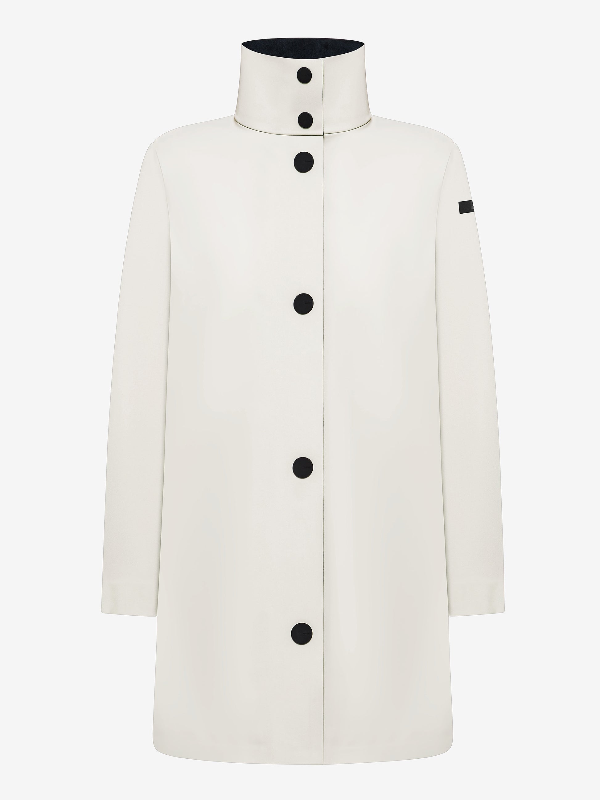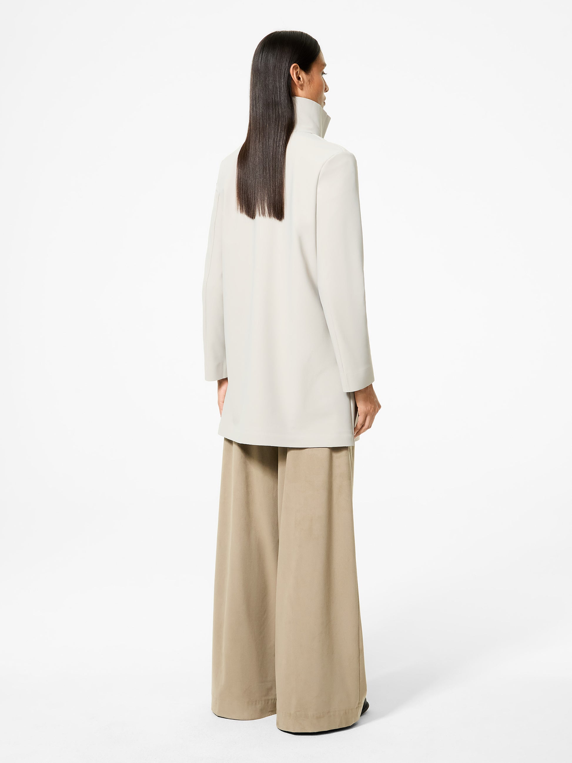 La creazione si distingue per i volumi essenziali e il design deciso e nitidissimo, che unisce eleganza e dinamismo. Realizzato in tessuto a membrana, resistente alla pioggia e traspirante, il capospalla combina comfort e protezione anche nelle giornate più imprevedibili. L'esterno nell'esclusivo tessuto stretch SURFLEX® è liscio al tatto e particolarmente confortevole: il suo finish super opaco crea un look sofisticato, che gioca a contrasto con il velluto interno. La giacca presenta diversi dettagli distintivi come il collo alto e avvolgente, le tasche invisibili con taglio a vivo e la chiusura a zip con doppio cursore nascosta dalla patta frontale. Questa è impreziosita dai bottoni rotondi gommati a contrasto, che sottolineano il carattere urban e l'allure contemporanea. Surflex Winter Thermo Coat Wom Jkt può essere abbinato al pull dal taglio boxy con motivo 3D a losanghe della collezione, nel creare un look contemporaneo e informale di tendenza.