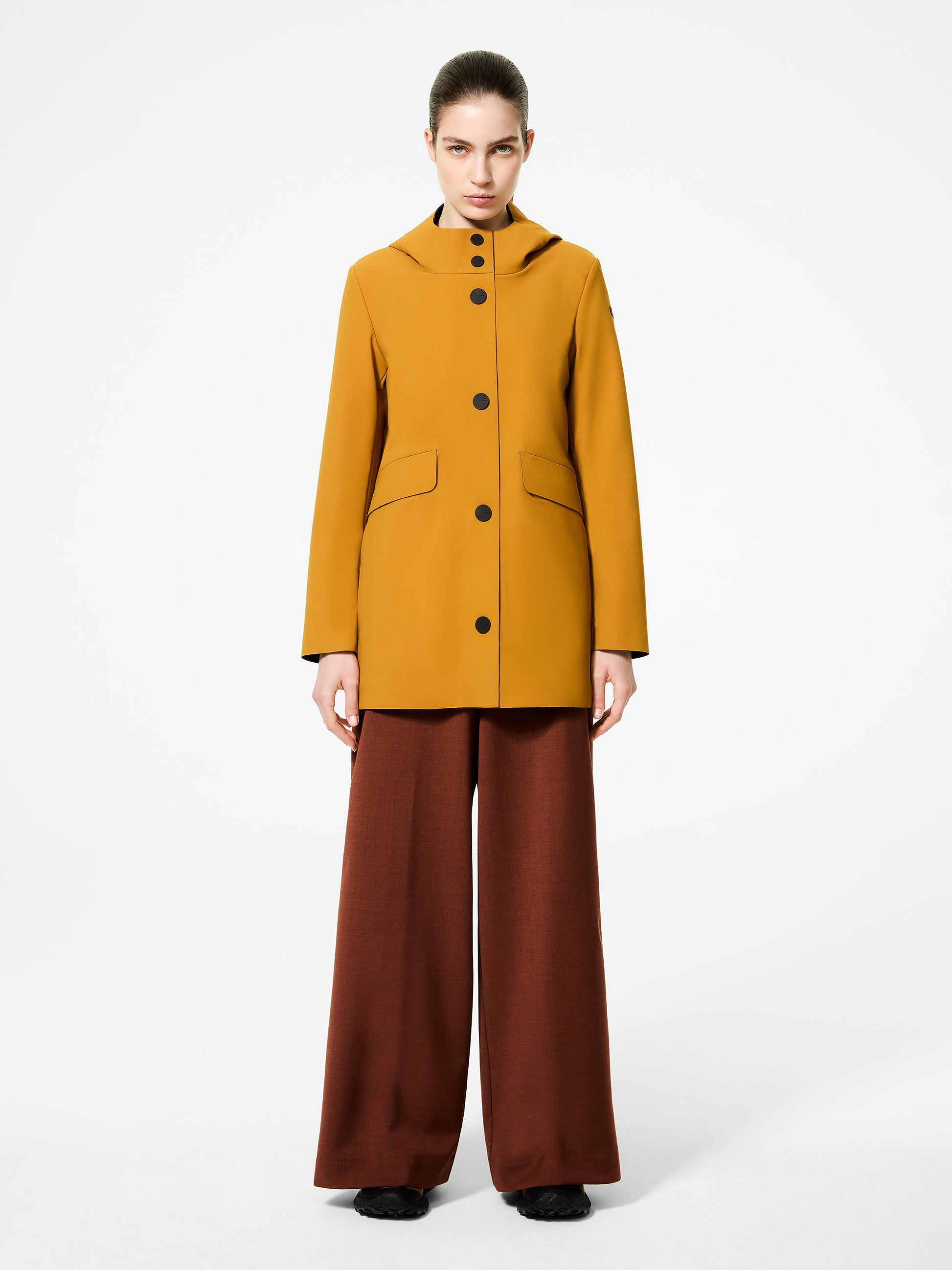 Questa giacca di lunghezza media è l'alleato ideale per affrontare l'autunno con stile e contemporaneità. Ideale sia per le giornate in città, sia nei weekend outdoor, la utility jacket unisce funzionalità e raffinatezza in un mix irresistibile. Gli studiati dettagli, come i bottoni a pressione rotondi satinati e logati della patta che nasconde la chiusura a zip, le tasche con pattina e l'avvolgente cappuccio, valorizzano la silhouette donando un tocco di femminilità e di carattere, nel rendere il capo di tendenza. Realizzato in tessuto a membrana traspirante e impermeabile, il parka presenta il look super opaco dell'esclusivo shell in SURFLEX®, dal touch piacevolmente liscio. Il logo a microiniezione nero sulla manica sinistra completa con una nota iconica questo capo intramontabile, che può essere abbinato a un paio di pantaloni dal taglio palazzo in ecosuede per un outfit urban distintivo.