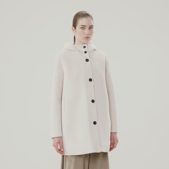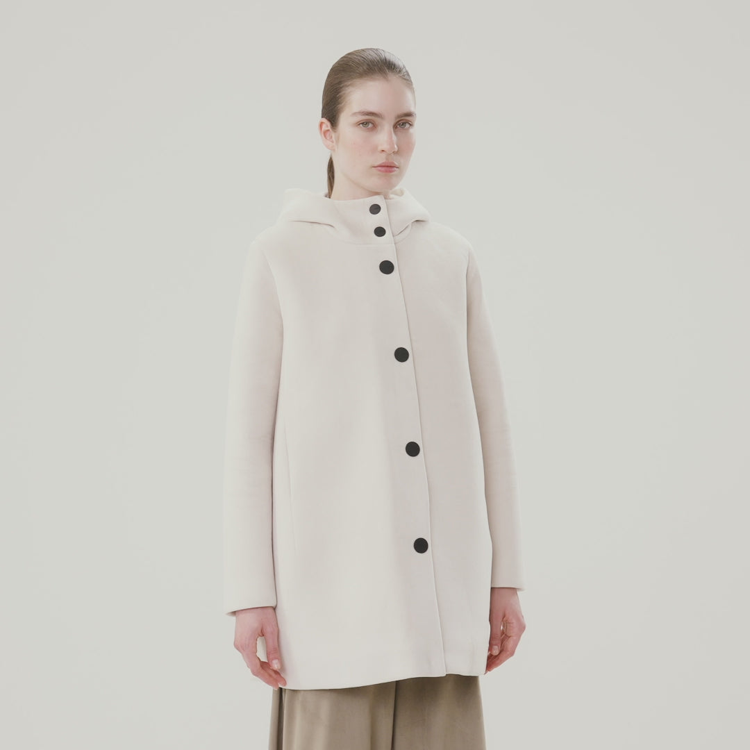 Il parka dall'anima urban e funzionale si rivela ideale nell'affrontare con stile le fredde giornate autunnali in città. Il design minimalista e senza tempo è valorizzato dal tessuto velour, dal finish opaco che combina la raffinatezza al comfort del suo touch morbido e piacevole. La linea si distingue per dettagli di tendenza come l'avvolgente cappuccio integrato, i bottoni rotondi a pressione neri soft touch e il logo nero a microiniezione sulla manica sinistra, che aggiungono un tocco di esclusiva ricercatezza. Perfetta da abbinare a un paio di pantaloni cargo dal taglio asciutto e a un blazer destrutturato, la creazione unisce praticità e stile contemporaneo in un look contemporaneo e di carattere.