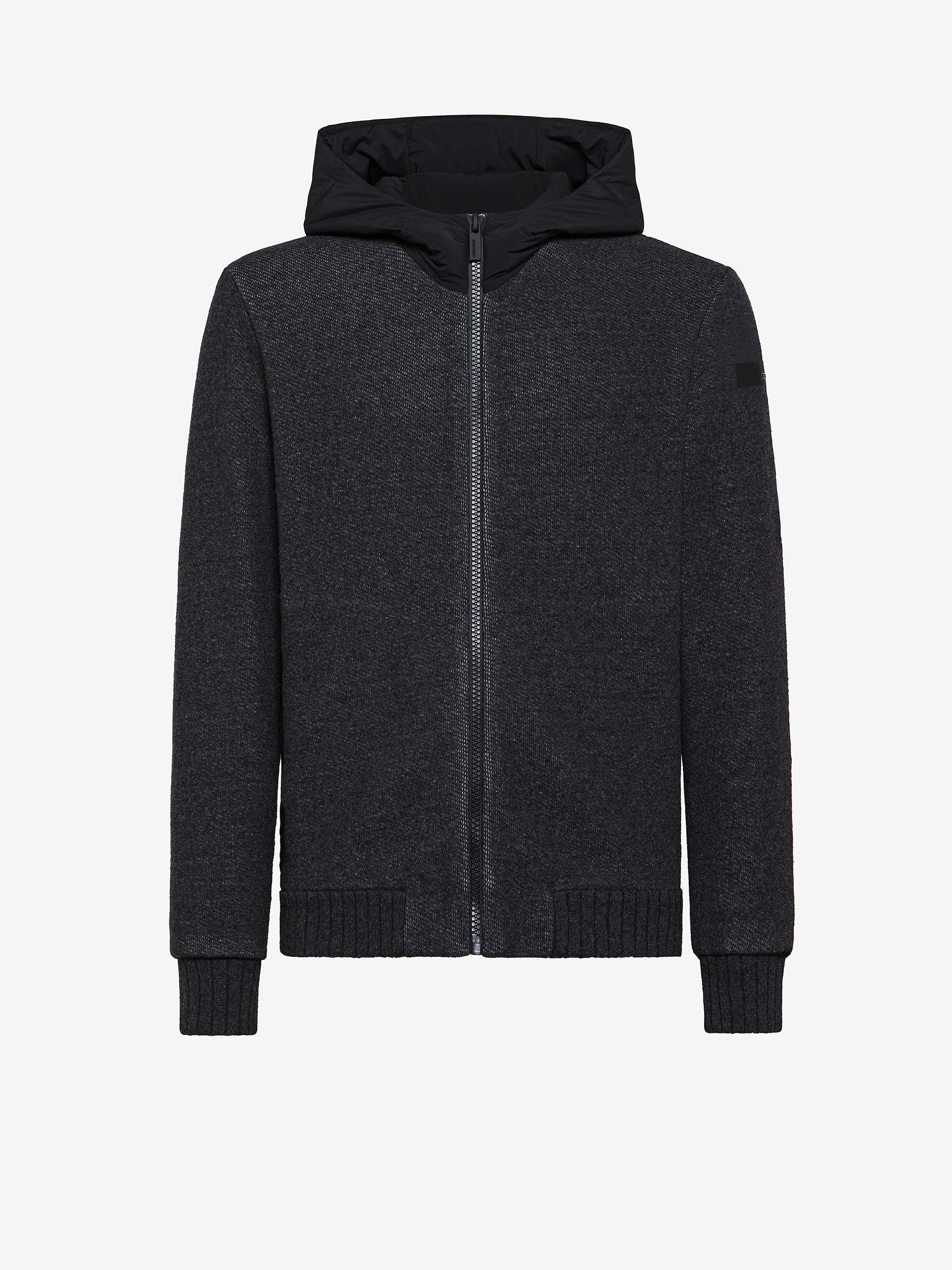 La felpa con cappuccio è realizzata in versatile e consistente tessuto tecnico misto lana, con costruzione a nastrature selettive che ne sottolineano il dinamismo e la tenacia. L'interno si distingue per i canali tubici totalmente privi di impunture, che contengono la soffice imbottitura in piuma d'anatra 90/10, particolarmente calda e leggera. Il design essenziale è sottolineato dalla zip termonastrata, che sale a chiudere il davanti e il cappuccio imbottito. Le tasche laterali dotate di zip invisibili completano con discrezione il capo, rifinito dalle coste inglesi elasticizzate sui polsi e sul fondo. Il filetto arancione fluo sul retro e l'emblematico logo a microiniezione nero sulla manica sinistra sono le note di stile distintivo che completano questa felpa disponibile nelle tonalità scure di stagione, perfetta per completare diversi casual look dall'attitudine urban decisa e contemporanea.